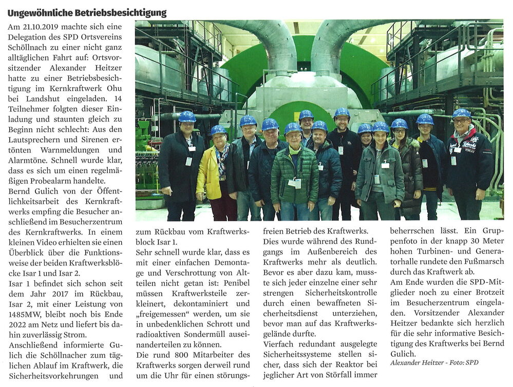 Lindenblattbericht: Besichtigung Kernkraftwerk Ohu am 21.11.2019