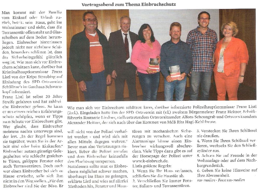 Lindenblattl Bericht "Vortragsabend zum Thema Einbruchschutz"